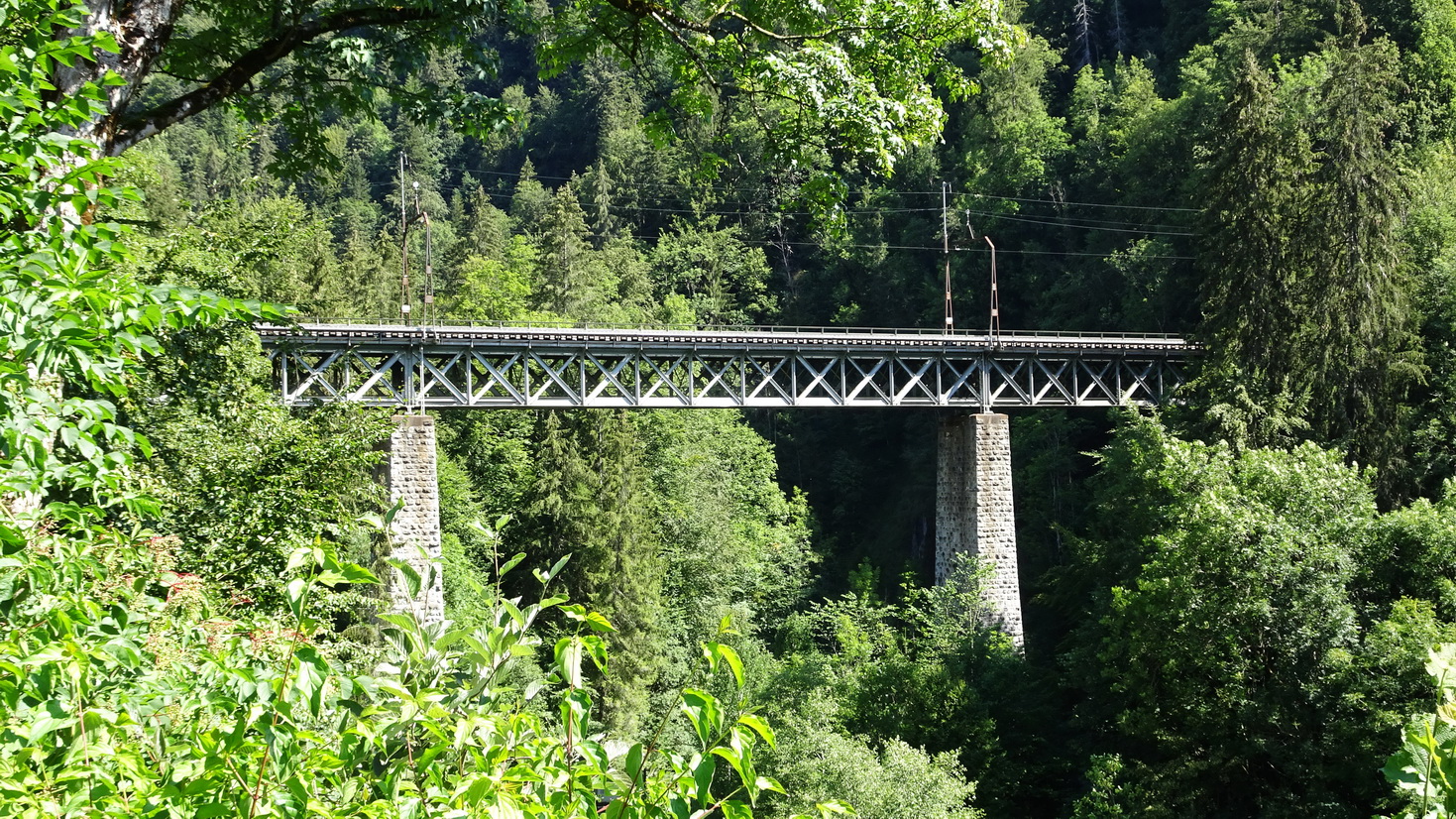 Simme und dann aufwärts Richtung P 865. Bis zu Überquerung der Gleise wandere